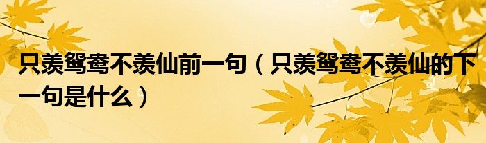 今天小鱼来为大家解答以上问题,只羡鸳鸯不羡仙前一句,只羡鸳鸯不羡仙的下一句是什么很多人还不知道,现在让我们一起来看看吧!
