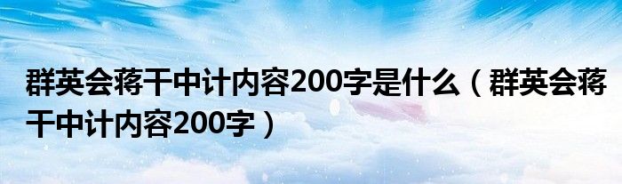 今天小编岚岚来为大家解答以上的问题。群英会蒋干中计内容200字是什么,群英会蒋干中计内容200字相信很多小伙伴还不知道,现在让我们一起来看看吧!