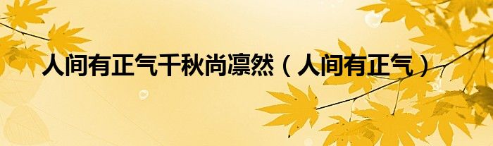 今天小编岚岚来为大家解答以上的问题。人间有正气千秋尚凛然,人间有正气相信很多小伙伴还不知道,现在让我们一起来看看吧!