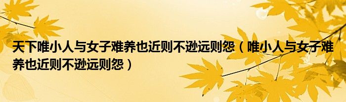 今天小编岚岚来为大家解答以上的问题。天下唯小人与女子难养也近则不逊远则怨,唯小人与女子难养也近则不逊远则怨相信很多小伙伴还不知道,现在让我们一起来看看吧!